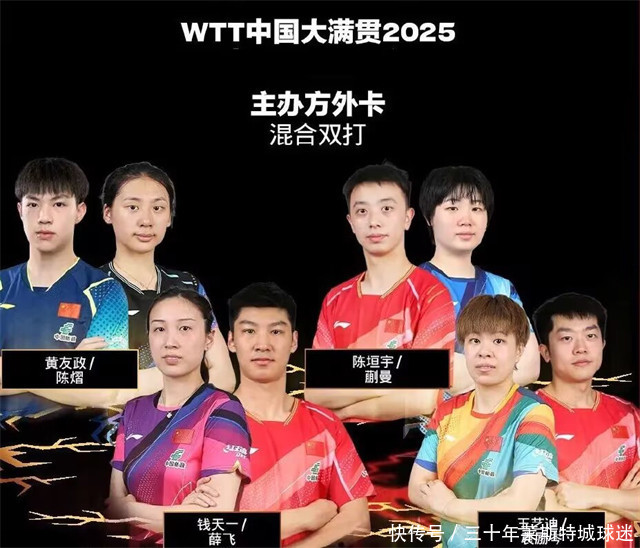 男队方面最受宠爱的外卡选手不必猜,京队的黄友政当然是集万千宠爱于独处,男单正赛外卡赢得了,男双与温瑞博赢得外卡,混双外卡则是搭档陈熠。和钱天一搭档的宿将不同的是,黄友政配对的王人是但愿之星,可见王皓与肖战的确呕尽心血。
