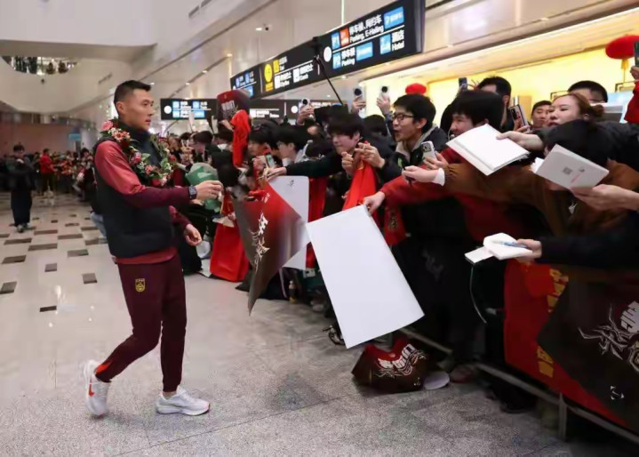 看到有这样多前来接机的球迷,球队高下终点欢乐,球员包括教化组围着编织的鲜花,一稔红色的短袖T恤,笑貌满面地与现场球迷互动、签名。