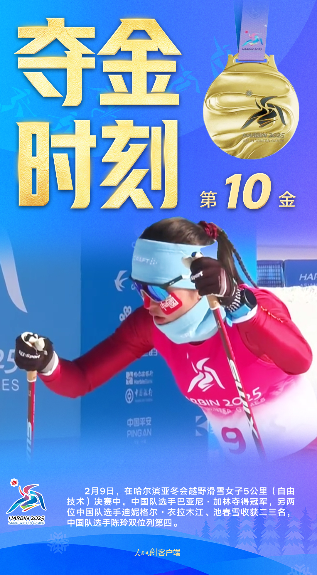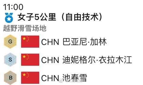 越野滑雪女子5公里(解放技巧):巴亚尼·加林、迪妮格尔·衣拉木江、池春雪包揽金银铜,陈玲双位列第四