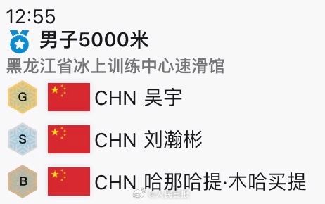 速率溜冰男人5000米:吴宇、刘瀚彬 、 哈那哈提·木哈买提包揽金银铜